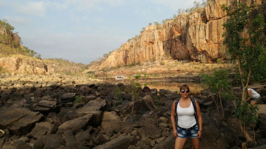 Das Top End zählt für mich mit zu den schönsten Regionen Australiens. Seien es die zahlreichen Wasserfälle mit den „Badeseen“ im Litchfield Nationalpark, die gerade in den heißen Monaten zu einem erfrischenden Bad einladen oder die faszinierenden Felszeichnungen im Kakadu Nationalpark, die man auf kurzen Spaziergängen wie am Ubirr Rock oder auch auf abenteuerlicheren Wegen im Arnhemland z.B. auf dem Gelände der Mt Borradaile Station bestaunen kann. Dort klettert man über Felsen in heiliges Terrain und muss dabei auch noch die Augen aufhalten nach den hier freilebenden wilden Büffeln. Ein einzigartiges Erlebnis!