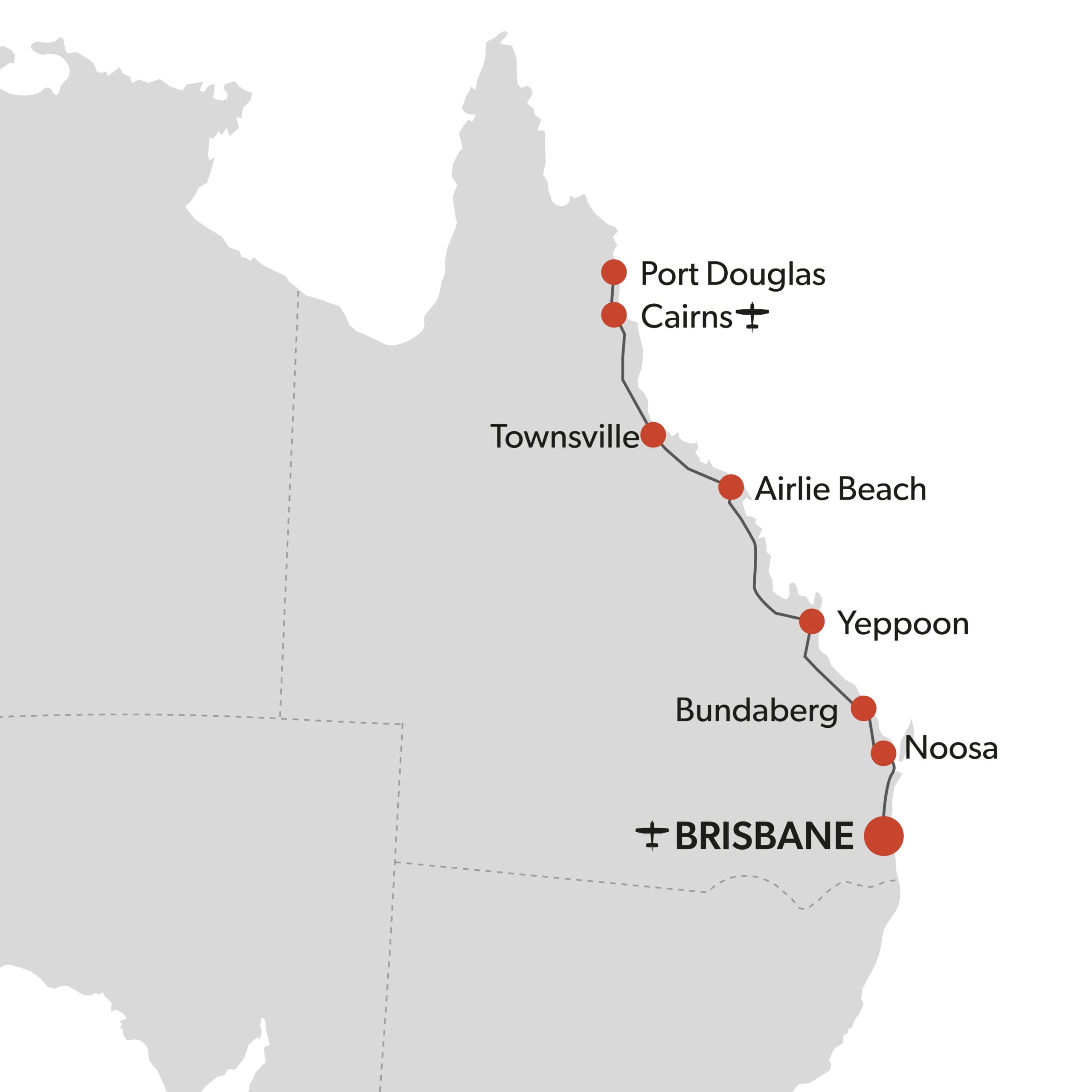 Der Sonne entgegen erkunden Sie auf dieser Selbstfahrerreise die Highlights des australischen Sonnenstaats. Von den bunten Stadtlichtern Brisbanes vorbei an der belebten Sunshine Coast, über die größte Sandinsel der Welt "K'gari", die atemberaubende Inselwelt der Whitsunday Islands, bis in den tropischen Norden, wo die farbenfrohe Schönheit des Great Barrier Reef auf die satten Grüntöne des Daintree-Rainforest, einem der ältesten tropischen Regenwälder der Welt, trifft. Erleben Sie die wundervolle Flora und Fauna, lassen Sich von der Freundlichkeit der Queenslander anstecken und genießen das entspannte Flair der Ostküste.