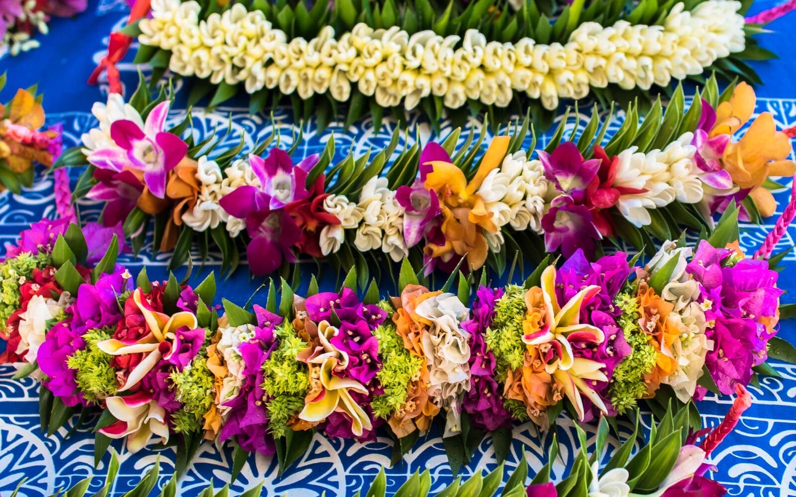 Willkommensgruß mit Blumenkranz und Muschelkette