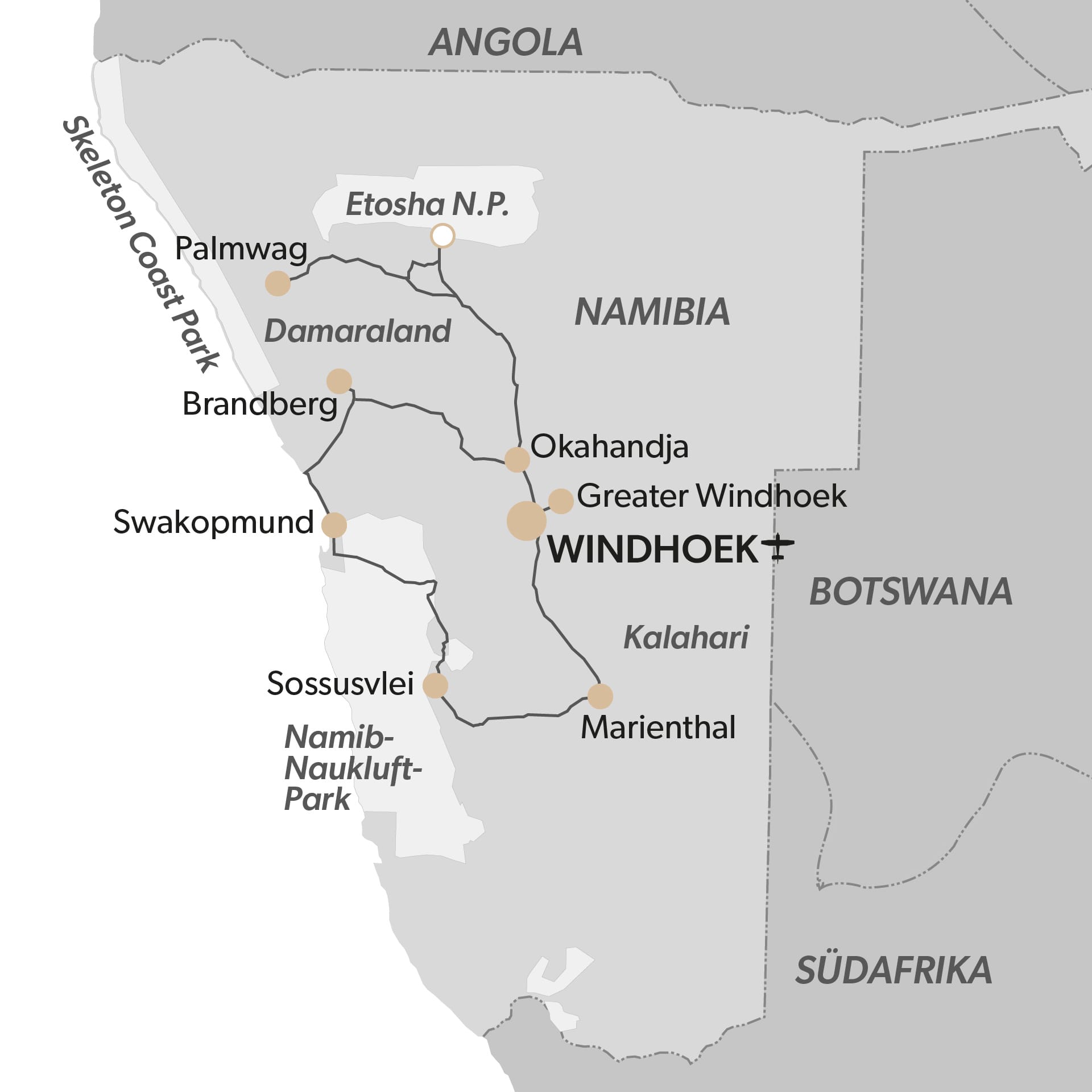 Windhoek (WDH) ist die letzte Station Ihrer Reise.