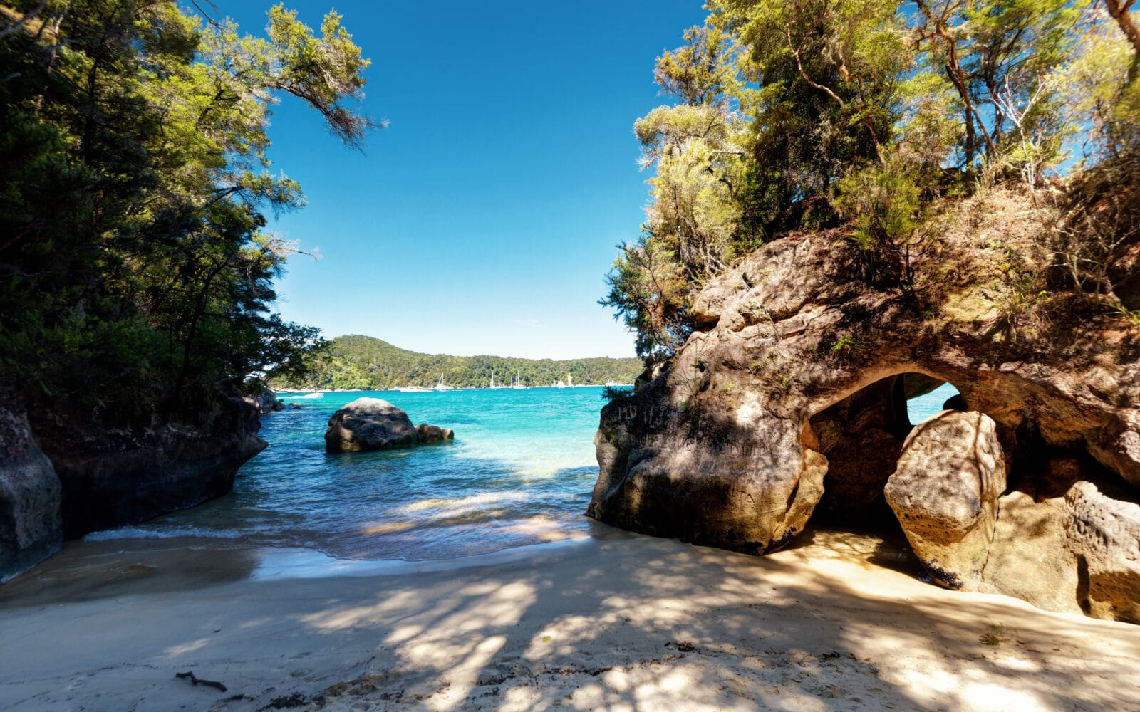 Obwohl der Abel Tasman Nationalpark einer der kleinsten Parks Neuseelands ist, bietet er mit seinen paradiesischen Buchten, sattgrünen Farnwäldern und türkisblauem Wasser viele Highlights. Der berühmte 60km lange Abel Tasman Coast Track dauert 3-5 Tage, übernachtet wird auf Campingplätzen oder vorreservierten Hütten im Nationalpark. Es sind aber auch Tageswanderungen möglich dank des Abel Tasman Wassertaxi Service. Die Reisenden haben so die Möglichkeit, an einen bestimmten Punkt gebracht oder abgeholt zu werden und so nur Abschnitte zu wandern. Auch Kajaktouren, Segeltörns und Skydiving gehören zu beliebten Aktivitäten im Küstenparadies.
